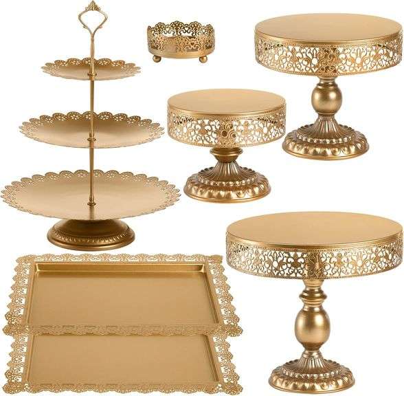 LOT 146 - Lyellfe Set of 7 Gold Cake Stand, Metal Cake Stand Set for Dessert Table, Decorative Dessert Display