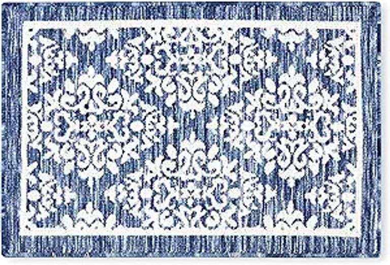 TOWN & COUNTRY EVERYDAY Walker Damask Medallion Everwash Washable Multi-Use Decorative Rug, Tufted Kitchen Rug, Low-Profile Door Mat, Bath Rug with Non-Slip Backing, Navy Blue, 24"x40"