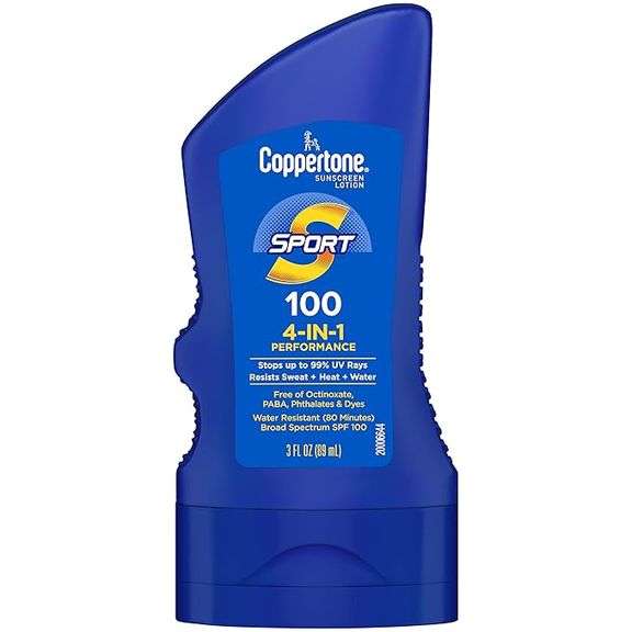 Coppertone SPORT Sunscreen SPF 100 Lotion, Water Resistant Sunscreen, Body Travel Size 3 Fl Oz