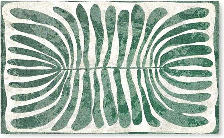 TOWN & COUNTRY LUXE Livie Matisse Cutout Everwash Washable Multi-Use Decorative Rug, Kitchen, Low-Profile Door Mat, Bedroom and Dorm Room With Non-Slip Backing, Green, 24"x40"
