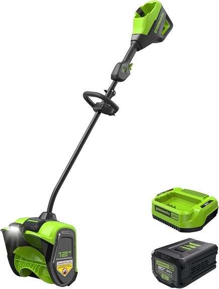 LOT 108 - Greenworks 80V 12" Brushless Cordless Snow Shovel with LED Light, 2.0Ah Battery and Charger Included
